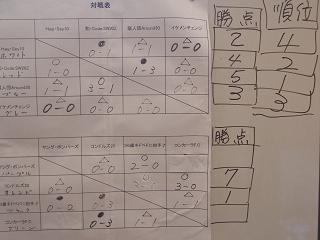 4チーム総当り戦で、勝ち点方式の得失点差で勝ち負けきめました。